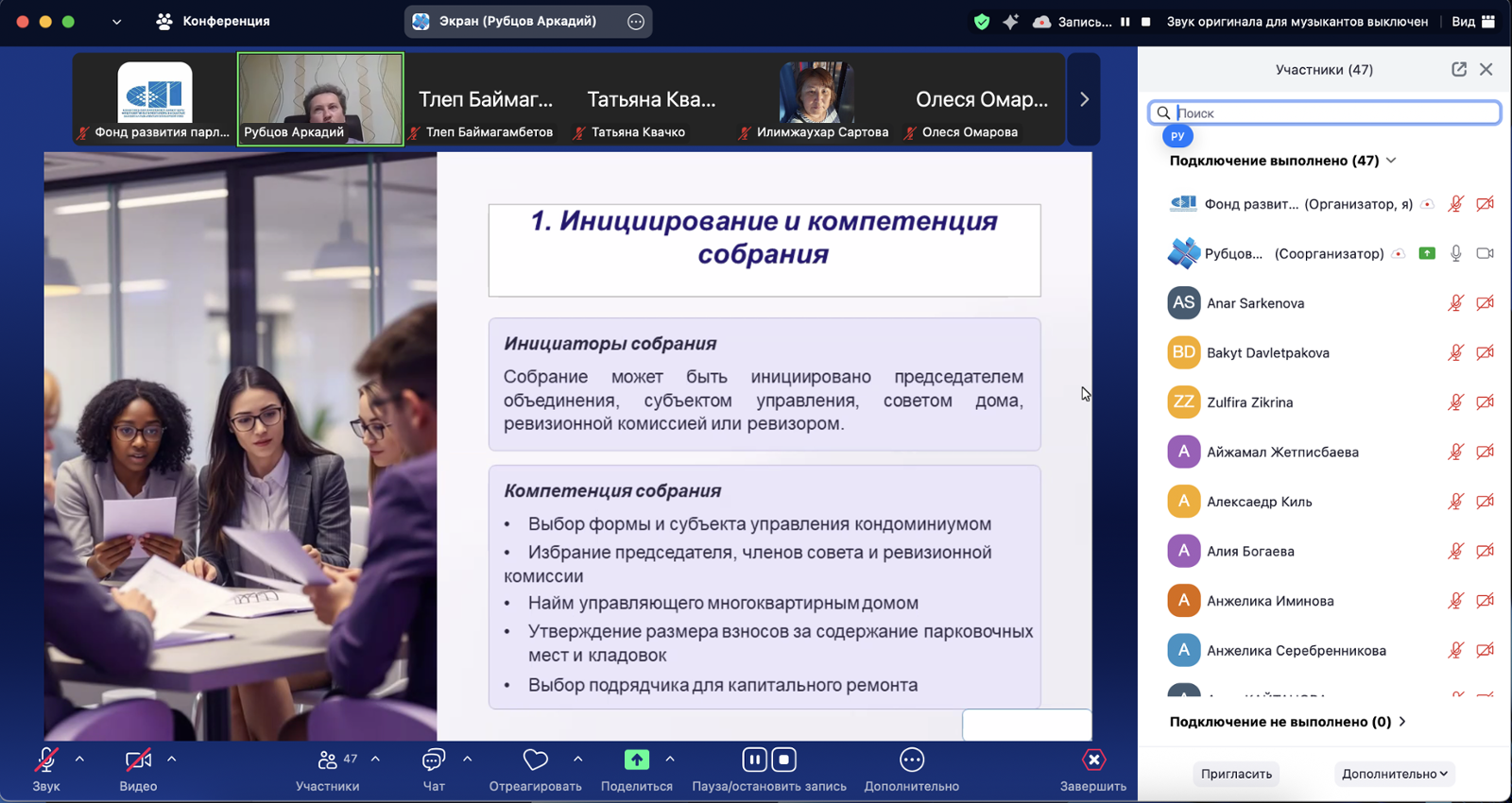 Foto 2. Aktuelle Fragen der Wohnungsverwaltung (jüngste Gesetzesänderungen) – Einberufung und Befugnisse der Eigentümerversammlung eines Mehrfamilienhauses, Referent: Arkady Rubtsov, KSK Association in Almaty. ©IWO