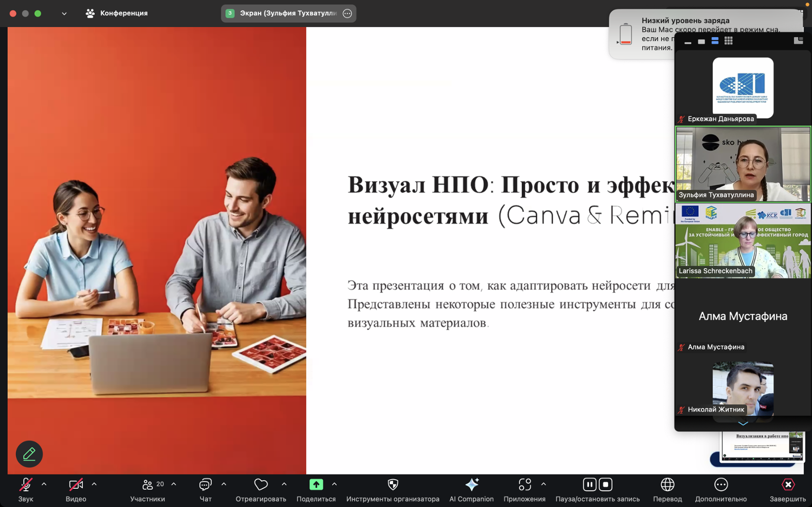 Foto 3. Webinar „Visualisierung und moderne Darstellung der Arbeit von NGOs” – praktische Instrumente zur Unterstützung von NGOs bei der Organisation ihrer Arbeit mit der Öffentlichkeit und den Medien, Zulfiya Tukhvatullina, Petropawlowsk. ©IWO